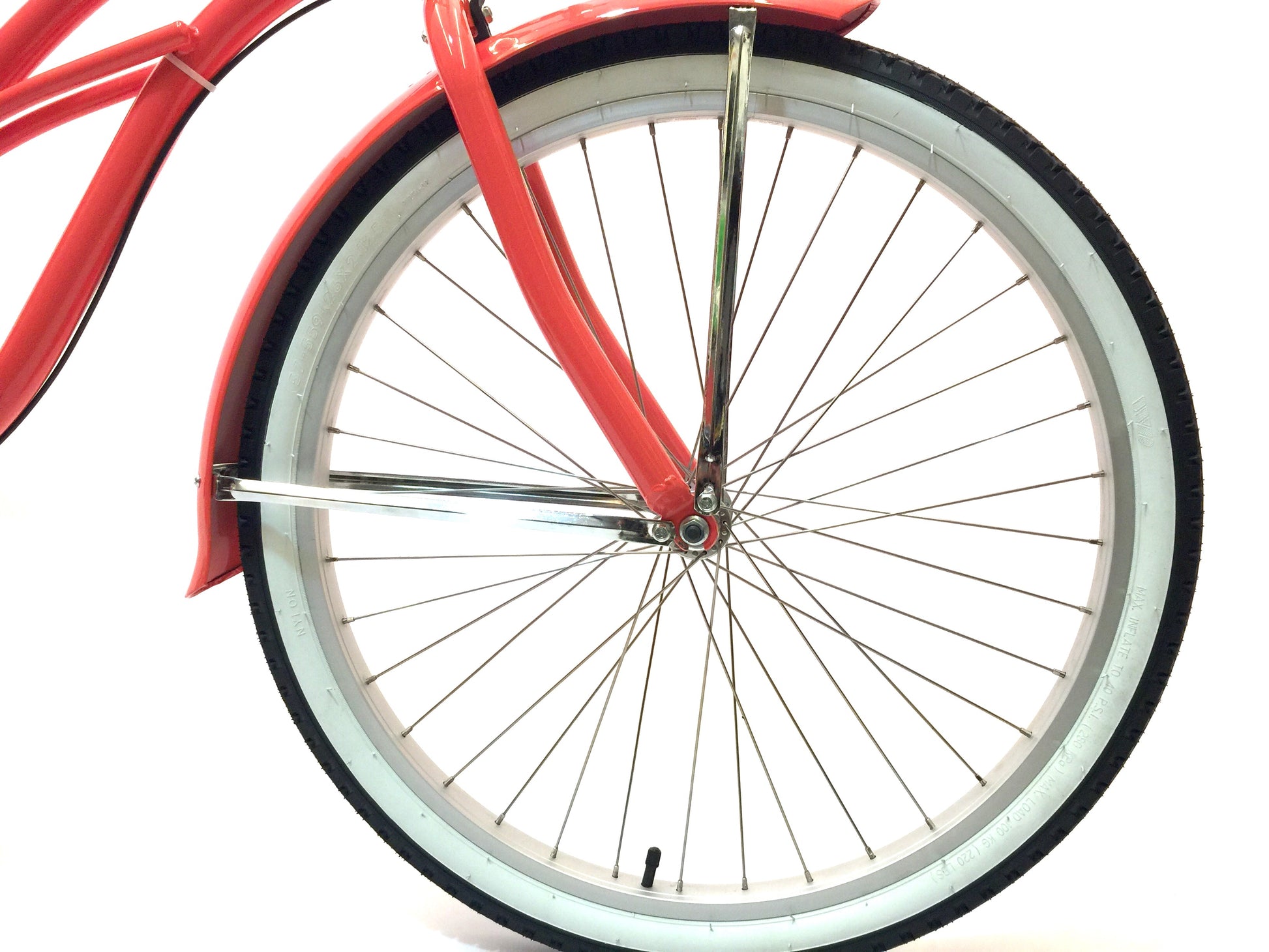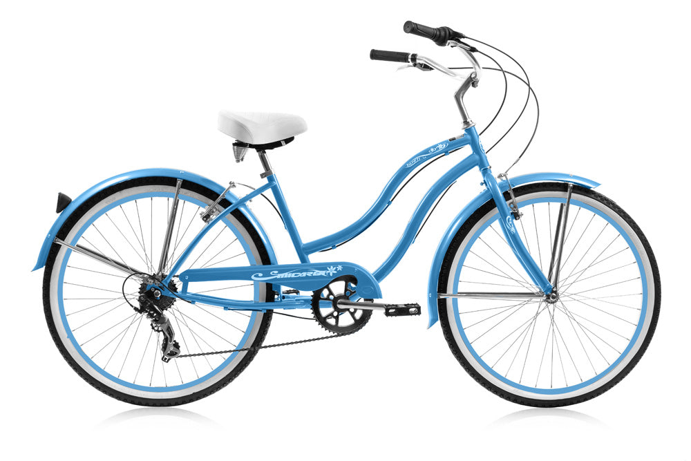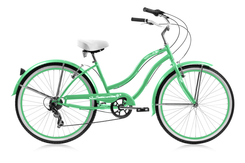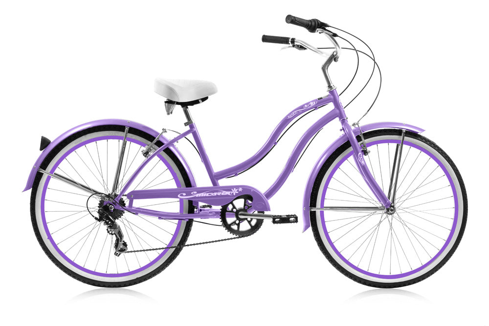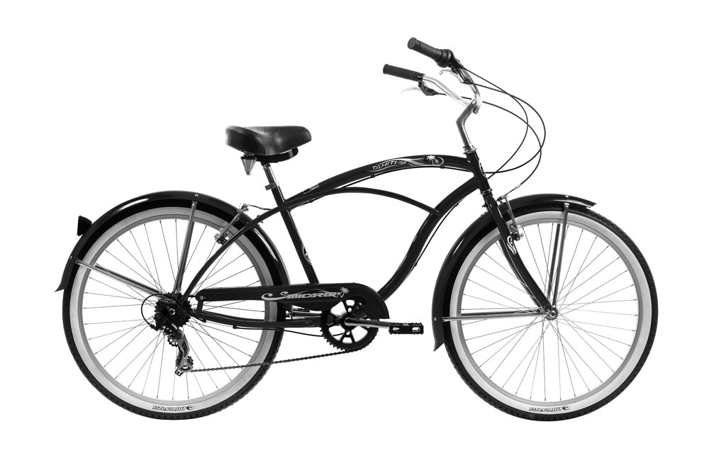 The Micargi Tahiti 24" 7 speed is a 24 inch version of our classic cantilever cruiser frame with all the style and pizzazz as its big brother. With a Shimano 7 speed drivetrain, nice comfy padded cruiser saddle and wide moon bars it's a pleasure to ride. With alloy rims and full fenders this beauty will stand out in a crowd. Hand actuated front and rear "V" brakes will bring you safely to a stop.