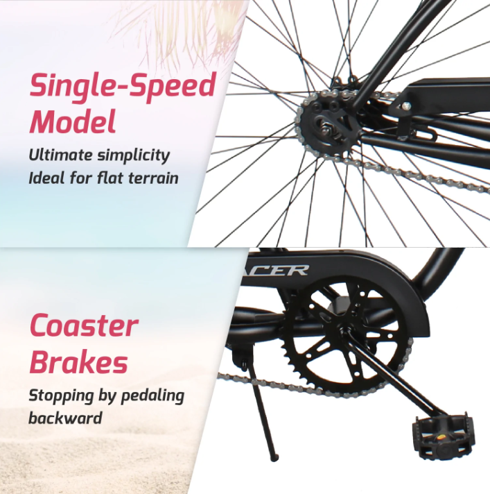 Experience the joy of single-speed simplicity—just pedal and go! No fuss, no gears. Perfect for leisurely rides and short distances, it’s all about enjoying the moment and the ride. Embrace the freedom of a bike that lets you focus on the journey
