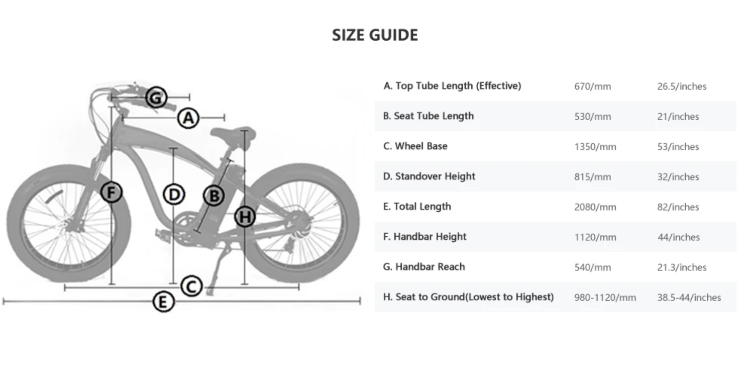 • Tires Size: 26" x 4.0 " Fat Tires