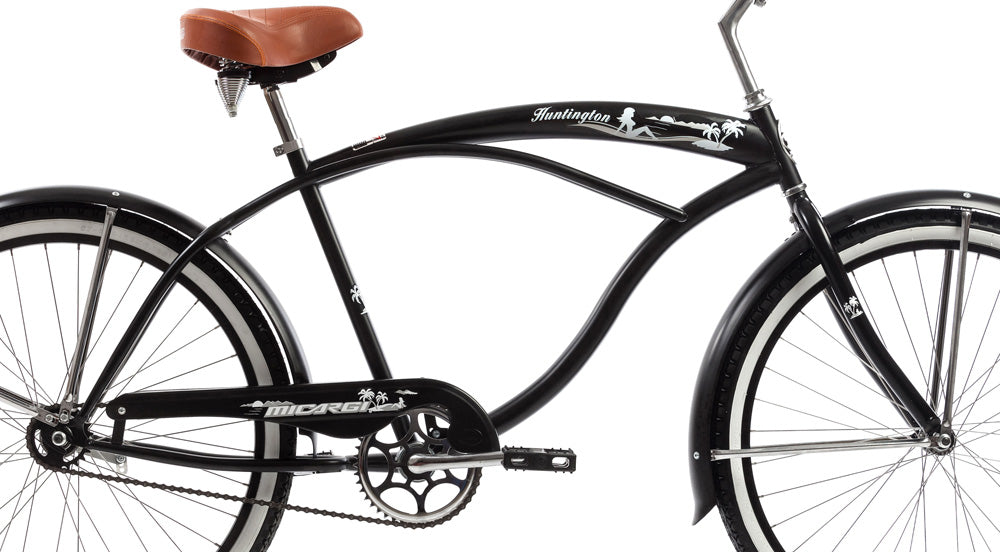 The Micargi Huntington 26" beach cruiser bicycle is designed for aesthetics and comfort. Plus it's an oversized cruiser. The Huntington has a single-speed coaster brake which means you pedal backwards to initiate the brakes. This cruiser is a California-style bike that rides smoothly and comfortably. You'll enjoy the ocean view while riding the Micargi Huntington Beach cruiser bike.