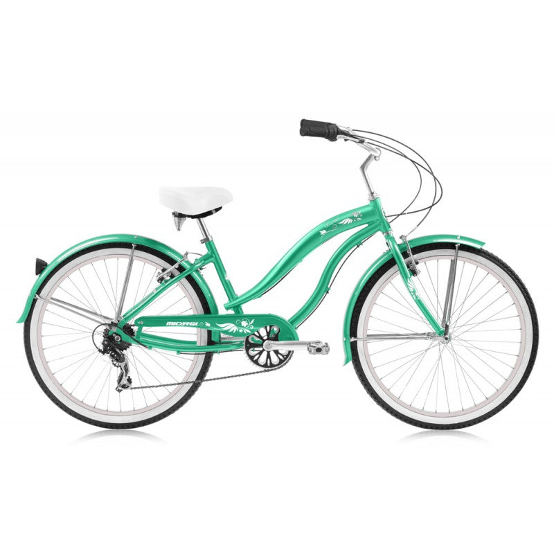 The Micargi Rover LX 7 24″ beach cruiser bike features a light-weight and anti-rust aluminum frame that you can count on. There is no worry if you’re cruising uphill or downhill. The 7-speed gear system will ease your pain. The Micargi Rover LX 24″ 7 speed aluminum beach cruiser also features front and rear V-Brakes for easy stopping, stainless steel spokes with alloy rims on whitewall tires, matching colored front and rear fenders, and an extra-padded saddle.