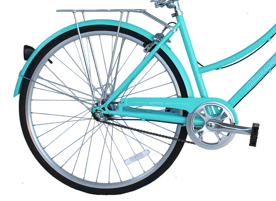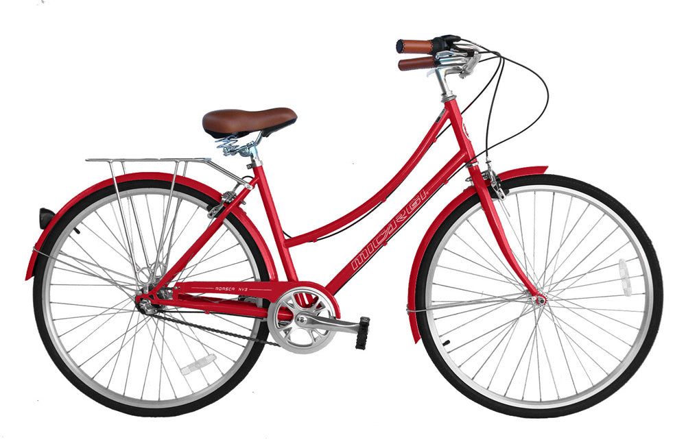 The Micargi Roasca is a 3 speed Women's City Bike. It features a hi-ten steel frame and fork and alloy caliper brakes that make stopping easy. The brown springer saddle and grip really compliment this city bike making it an eye-catcher anywhere you go.