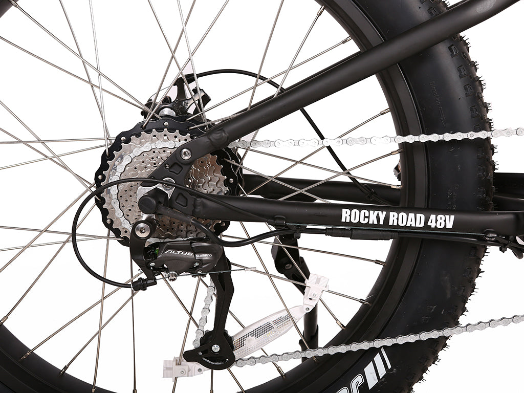 Is long distance cycling in your future? The Rocky Road 48 Volt Lithium Powered Electric Fat Tire Mountain Bicycle is a Lithium Battery powered Electric Bicycle cranking out 500 Watts from the Bafang High Torque Zero Resistance Clutch Motor with Digital Torque Sensor.