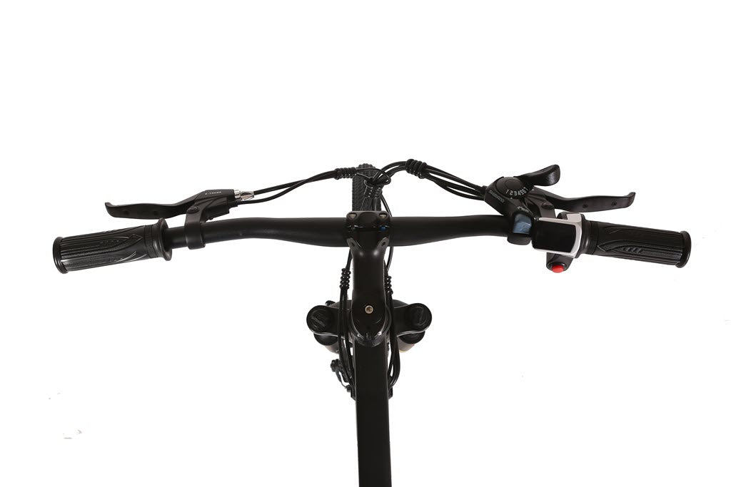 Trail Climber Elite is a Lithium Battery powered Electric Bicycle with a step-through frame, running on a 300 Watt Zero Resistance rear hub motor. Made with all top of the line components this model includes a 7 Speed Shimano Tourney® Gears & Shifter System, 7 Lightweight Lithium 24 Volt 10.4 Amp (previously only 8 amps) LiPo4 Batteries, a 100% Aluminum Alloy Frame, fully Adjustable Seat, and a Suntour hydraulic front fork.