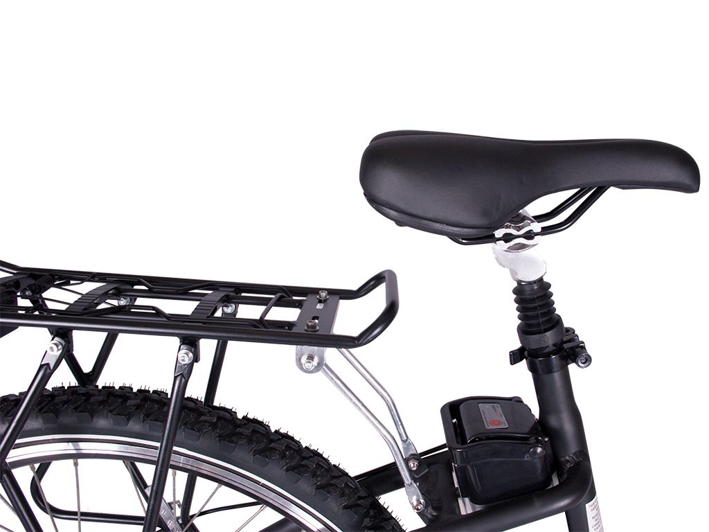 This electric bicycle will travel up to 20 miles on a single charge and it only takes about 4 hours to recharge the battery. The LiPo4 lithium battery pack is lightweight, compact, and mounts to the frame under the seat and is hardly noticeable.