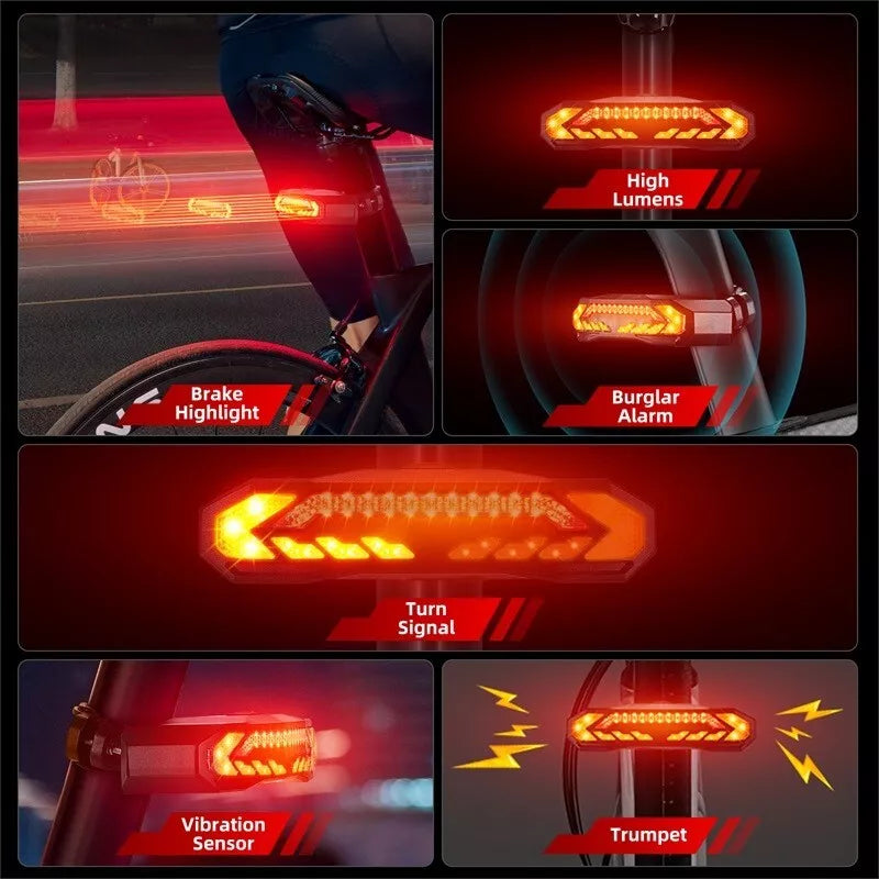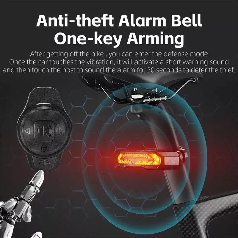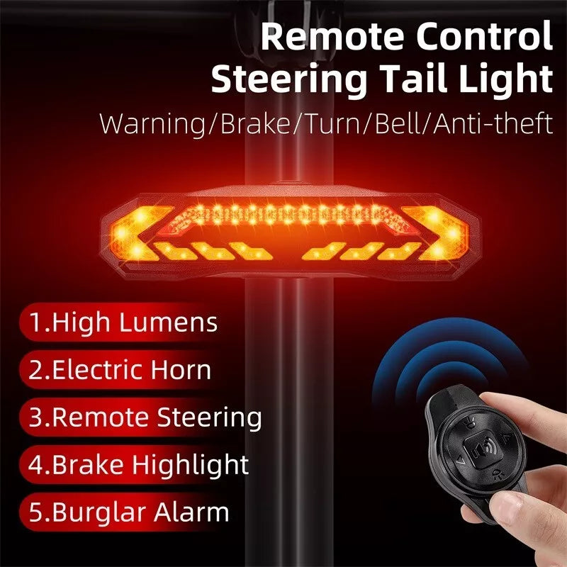 Introducing the Turn Signal Light Smart Brake Tail Light Alarm Bell by West Biking. With its remote control, extra wires are limited plus, controls can be done even when you're not on the bike. This tail light comes with a Day and Night light sense that automatically turns on the light.  This item comes with features such as high lumen lights, horn, remote steering, brake lights, and burglar alarm.