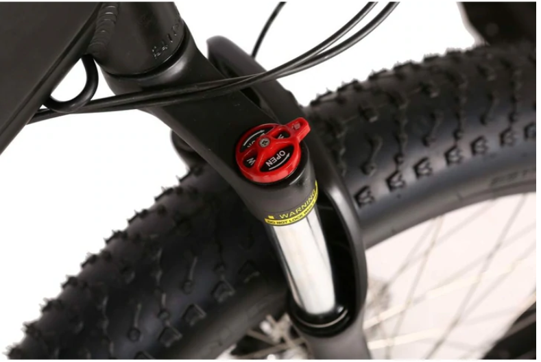 The Boulderado 48 Volt Lithium Powered Electric Fat Tire Step-Through Mountain Bicycle is a Lithium Battery powered Electric Bicycle cranking out 500 Watts from the Bafang High Torque Zero Resistance Clutch Motor. This bike features a lightweight, compact lithium LiPo4 48 volt 10.4 Ah integrated battery pack providing a considerable amount of power greater than our 24 volt or 36 volt models. This bike comes with everything Aluminum - every bolt, every nut, every nipple, every spoke. That means no rust! The 100% hand welded lightweight aluminum frame bicycle has Atlus Shimano 9-Speed Gears & Shifting System, oversized MOZO Front Hydraulic Suspension, aluminum rims with quick release axle on the front and a water proof quick disconnect on the rear and oversized Kenda 26 x 4.0 tires. Front & rear Tektro disk brakes are standard on the Rocky Road 48 Volt Electric Mountain Bicycle along with true VELO Brand Hand Grips & Mountain Bike Seat. This electric mountain bicycle comes standard with a rear cargo rack and high quality beverage holder. There is no extra charge!